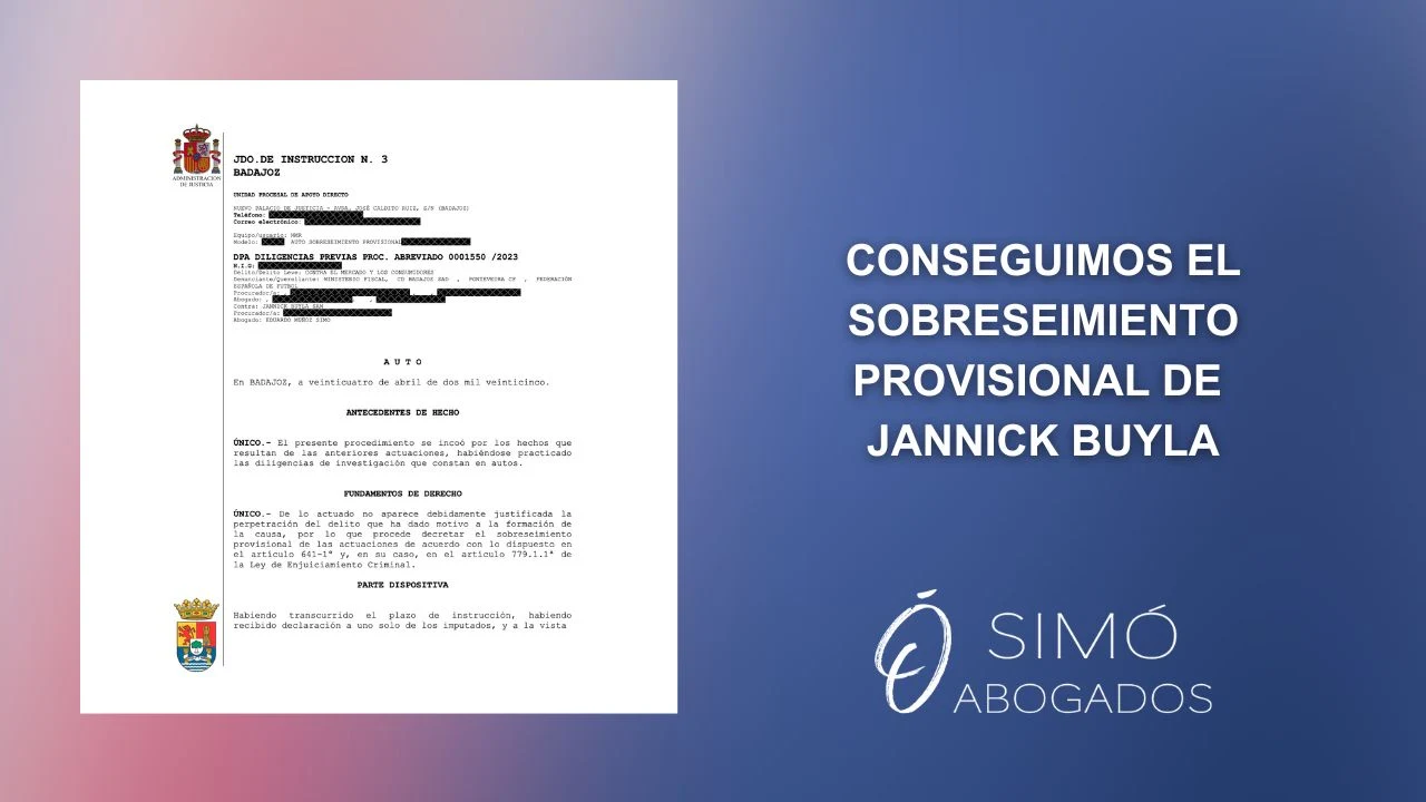 El Juzgado de Instrucción nº3 de Badajoz ha decretado el archivo del procedimiento penal abierto contra nuestro cliente, el futbolista internacional Jannick Buyla, tras concluir que no existe indicio alguno de que haya cometido delito alguno, y menos aún el presunto delito de corrupción deportiva por el que fue injustamente señalado.